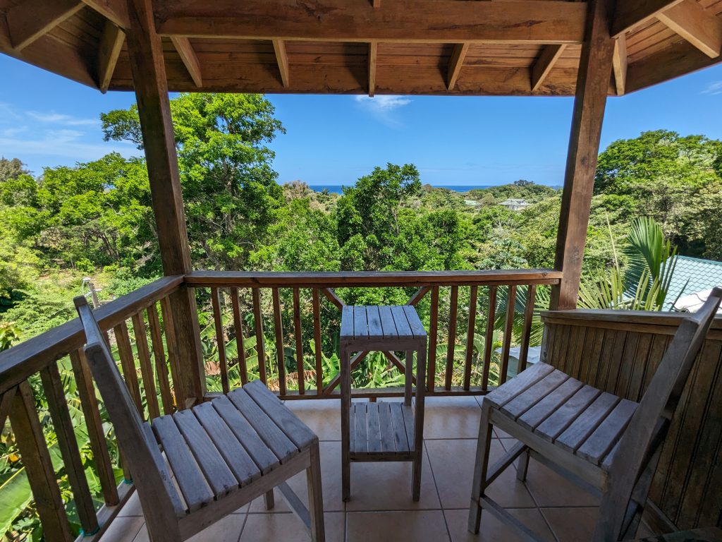 Découvrez votre balcon privé couvert avec table à manger, idéal pour des repas en plein air avec vue sur la jungle et la mer. Vous bénéficierez également d’un accès exclusif au balcon supérieur, un endroit idéal pour se détendre et admirer un coucher de soleil à couper le souffle.