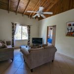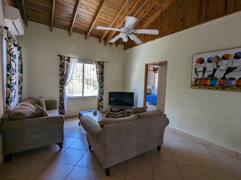 Il dispose d’une cuisine entièrement équipée et d’un salon confortable, idéal pour se détendre ou recevoir. La chambre exceptionnellement spacieuse comprend deux lits queen-size moelleux, parfaits pour les familles ou les invités souhaitant plus d’espace. Une salle de bain spacieuse et joliment carrelée ajoute à la sensation de confort et de luxe. Accédez à votre balcon couvert avec table à manger, idéal pour prendre vos repas en plein air tout en admirant la vue imprenable sur la jungle et la mer.
