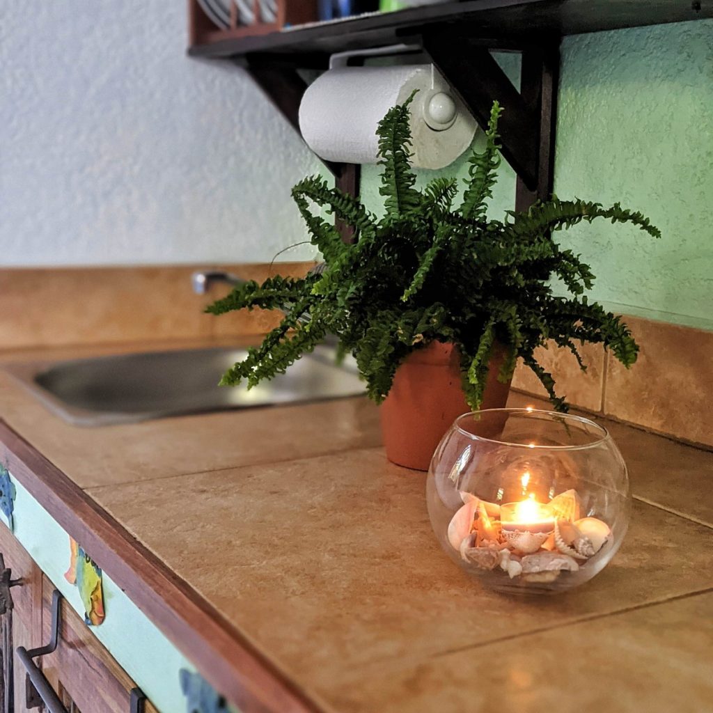 La kitchenette est équipée d’une cafetière, d’un four micro-ondes, d’un grille-pain, d’un mixeur, d’un évier et d’un réfrigérateur. Il vient complet avec la vaisselle et les ustensiles.