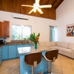 Air conditioning and ceiling fans throughout ensure a cool, comfortable retreat.