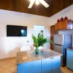 It features a full kitchen and a comfortable living room, ideal for relaxing or entertaining. The expansive bedroom includes a luxurious king bed, perfect for couples or solo travelers seeking extra space and comfort. A generously sized, beautifully tiled bathroom adds to the sense of understated luxury.