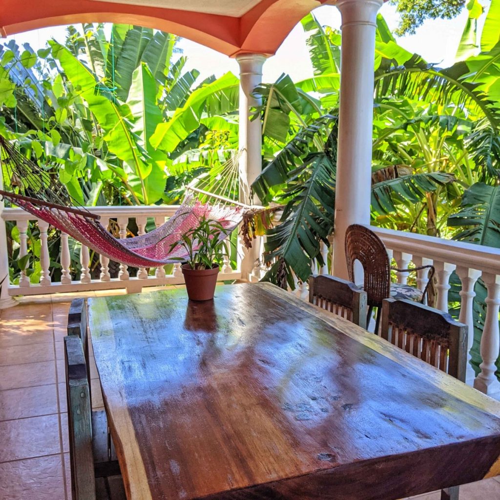 A large covered tiled balcony welcomes you as you exit the Toucan suite.