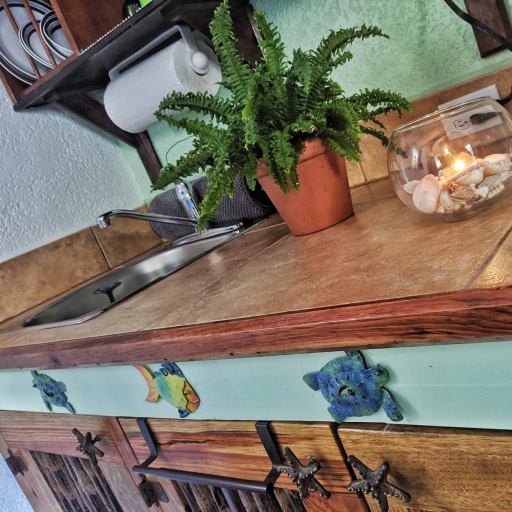 The Toucan is a beautifully tiled studio suite with a King pillow-top bed, a kitchenette and a beautiful tiled bathroom with walk-in shower.